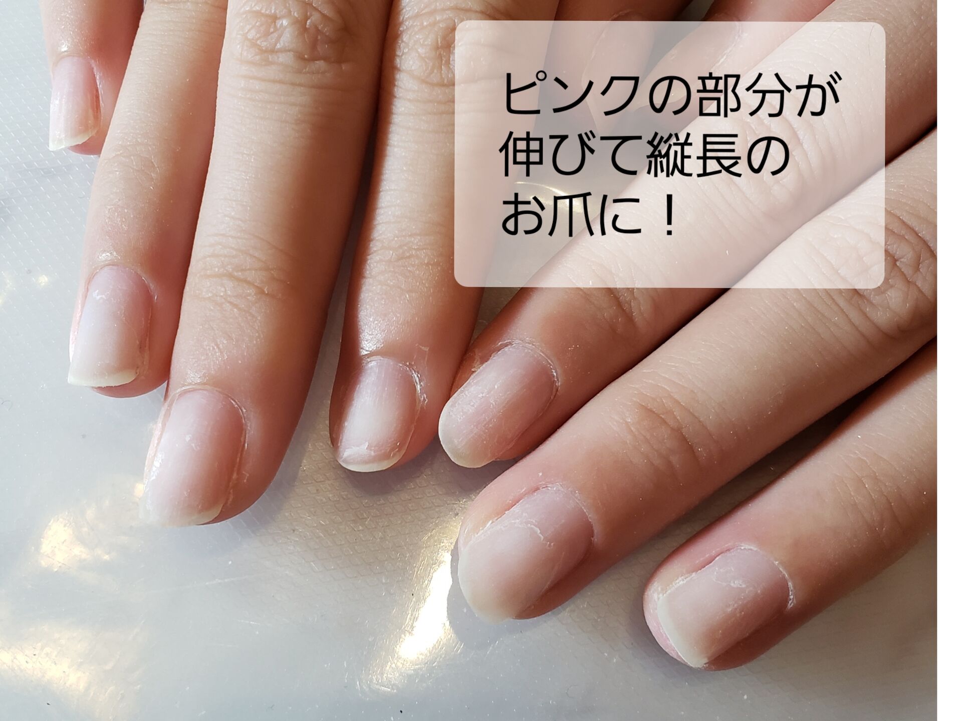 ピンクの部分を伸ばして キレイな自爪にしたい お客さまのビフォーアフター 自爪ケア専門サロン イニュラ